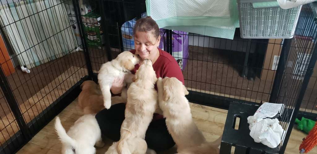 My love for animals has inspired me to go ahead and breed Labradors. I started out helping a friend with her litters and I loved taking care of the pups. After going a year without any dogs in my house it was too quiet so she nudged me to go for it. That’s when I found lily. I live in a quiet country setting with lots of room for her to roam. My dog is very good around the chickens she knows not to mess with them. Our pups are also raised around other pets and children so they are well socialized.